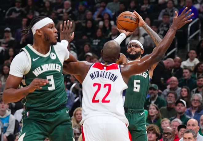 7人上双居然惨败!字母哥37+14降维打击,火箭旧将首秀14+5