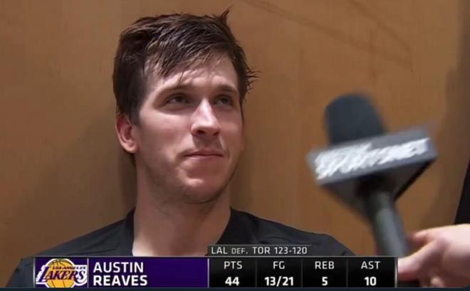 全场比赛,里夫斯出场40分48秒,21投13中砍下44分5篮板10助攻,三分球11投5中,罚球15中13,出现5次失误和3次犯规,正负值为+6。