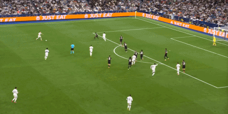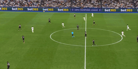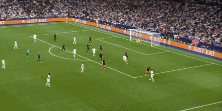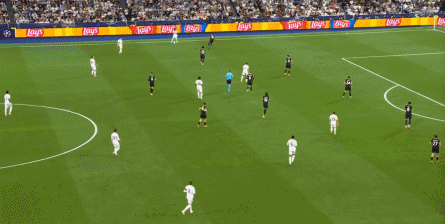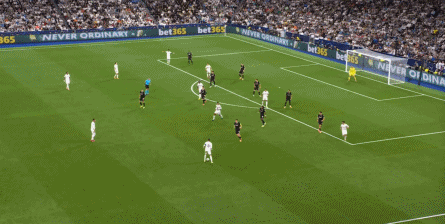 所以从上半场前半段的表现来说,这场比赛很有可能会进入到皇马围攻,尤文反击的基调当中,尤其是结合第23分钟这次皇马难得进入两线之间的好机会却没有打好: