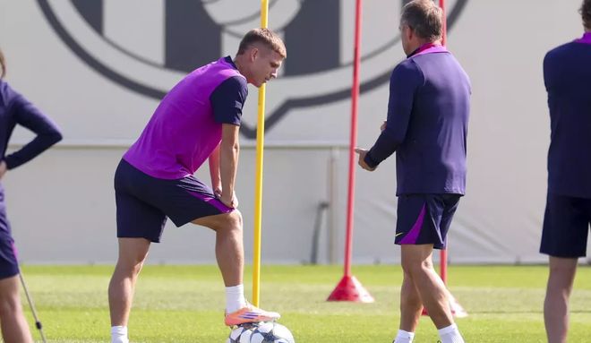 奥尔莫是在西班牙国家队集训期间受伤,当时正值对阵格鲁吉亚的比赛前夕,球队在埃尔切备战。他的小腿感到不适,并在训练营期间加重了伤情。奥尔莫今天已经穿上训练服,与俱乐部的康复团队一起在球场上进行训练。他的小腿伤势恢复良好,并且已经在巴萨训练基地进行了体能测试。
